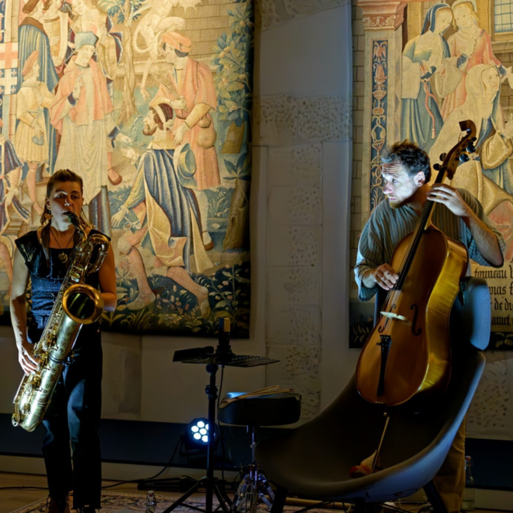 Composé de Laure Fischer au saxophone baryton et Alexis Thépot au violoncelle à cordes sympathiques ; les deux musicien·ne·s ont pris le risque de se frotter à la formation duo pour se mettre à découvert, à nu. Tour à tour rythmiciens mélodistes ou harmonistes, les deux musiciens aux multiples casquette marient les timbres d'un ambitus similaire.